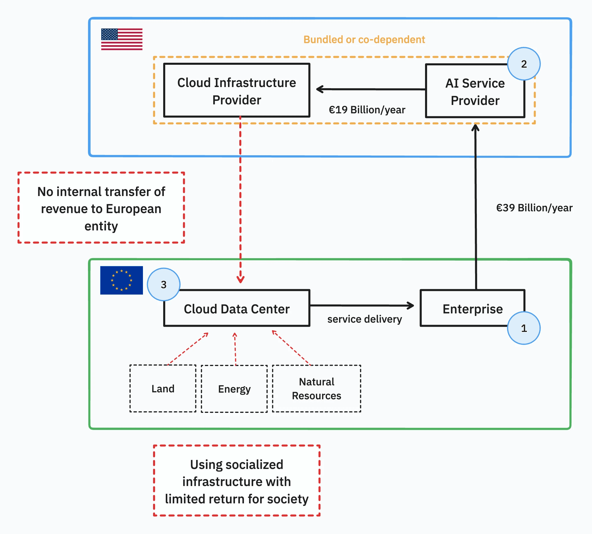 The mechanism is subtle but powerful: While providing valuable AI services to European businesses, US companies bundle these services with US-owned cloud infrastructure, creating a closed loop that captures value while bypassing European providers and tax systems.